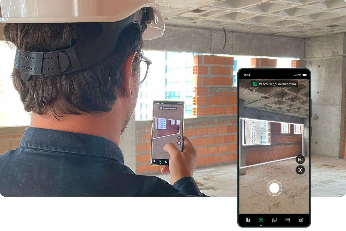 O Syncker Workspace é um ambiente de colaboração que integra o escritório ao canteiro. Ele ajuda as equipes em campo a visualizar projetos e instruções sobrepostos à realidade e habilita a inserção de apontamentos de qualidade localizados.